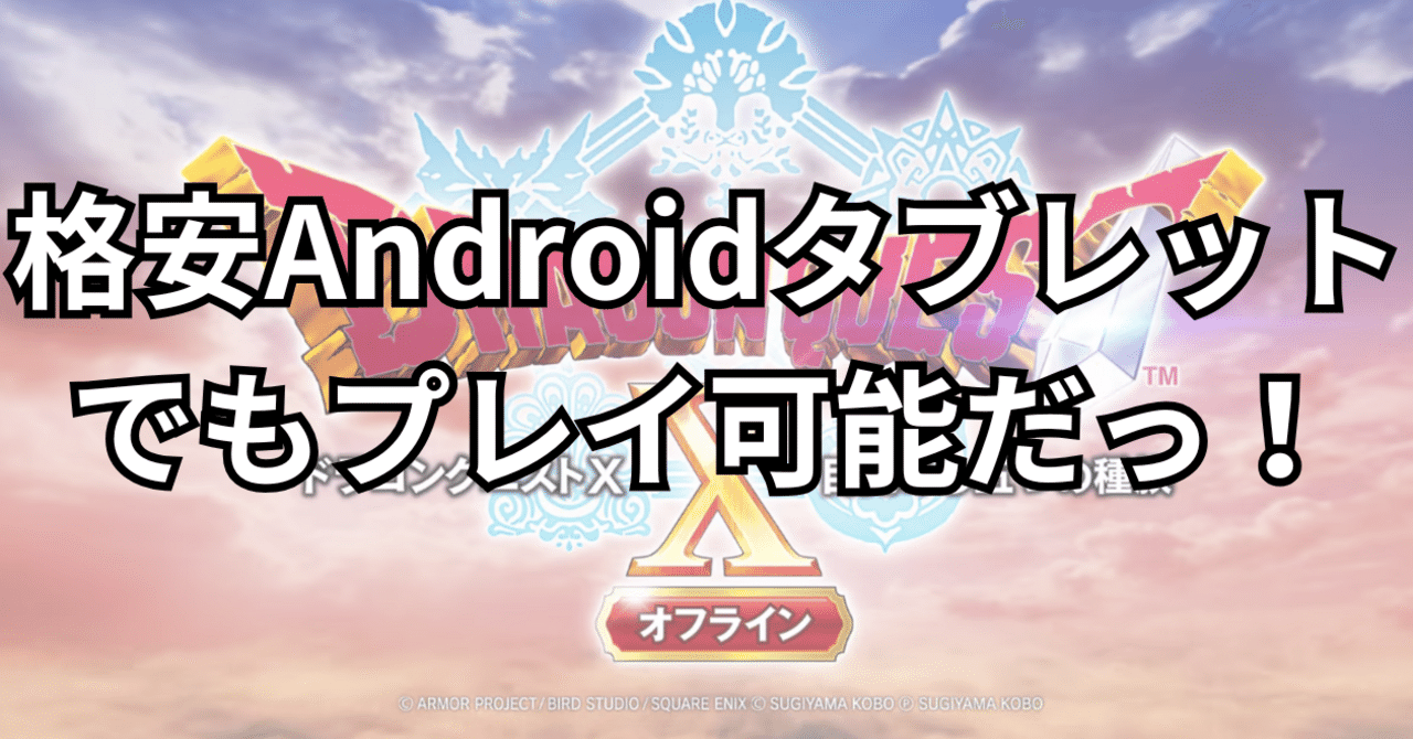もうタイトルで全て書いてしまったのですが、ドラゴンクエストXオフラインが発売されたので、手持ちの格安Androidタブレットで動作するのか?を確認しましたので、ご報告。